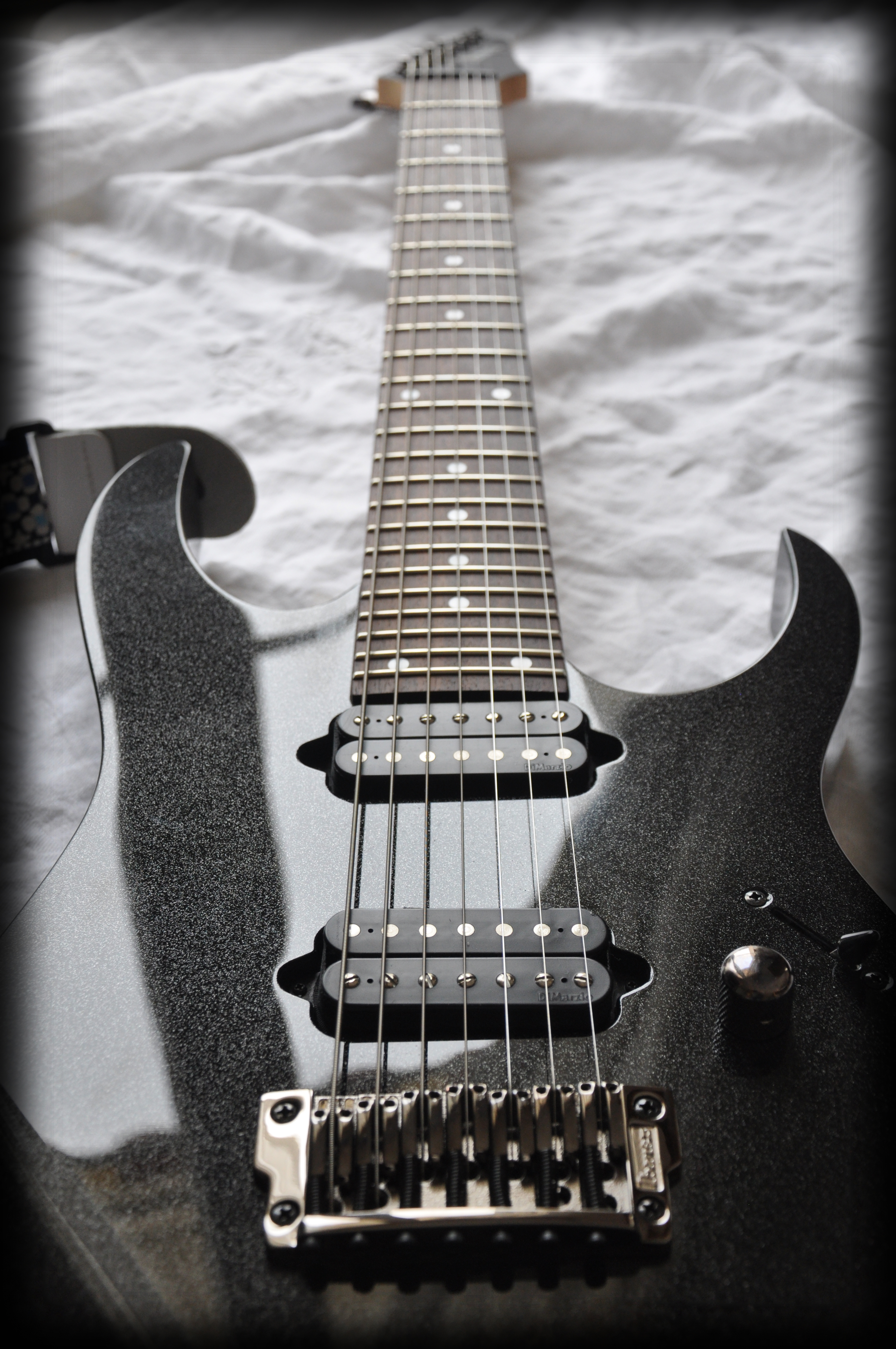 Ensuite j'ai pris la RGAIX7FM, et d'entrée le profil du manche m'a déplu, en lieu et place d'un arrondi parfait du manche de la prestige, j'avais à batailler avec une forme en D plat de chez plat. De plus, chose bête mais le vernis mat sous les doigts, je n'aime pas du tout, ça raccroche !