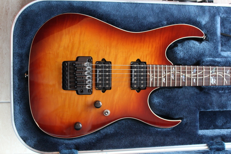 Le modèle est une RG2820 bien connu, ça je le savais, pour le câblage, Ibanez ne le propose pas sur son site web mais celui de la RG2620 de 2004 est identique (pour ça que j'y ai pensé vu que j'ai pas mal bidouillé celle d'un ami avec sa RG620BMSOL à ne pas confondre avec la QS qui a un 5 positions)