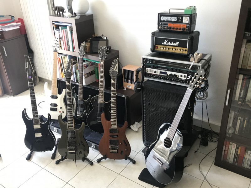 Merci c'est sympa, en fait il a monté un Gibson en manche (je ne sais pas quel modèle mais je trouve cela original) et un Seymoun Duncan SH4 en chevalet. J'aime bien le SH4 mais j'en ai déjà un sur une ESP Eclipse et sur ma toute prochaine Charvel Limited edition Henrik Danhage...du coup repasser au Tone Zone que j'adore également me permettre d'avoir 2 gratte en TZ et 2 en SH4