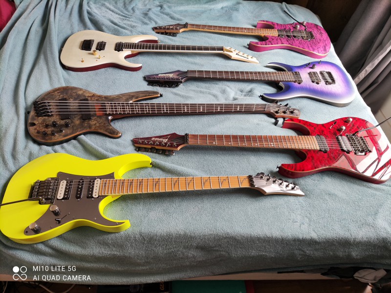 Bon ayant enfin reçu ma basse Ibanez, comme convenu, une petite photoi de famille de mes Ibanez
