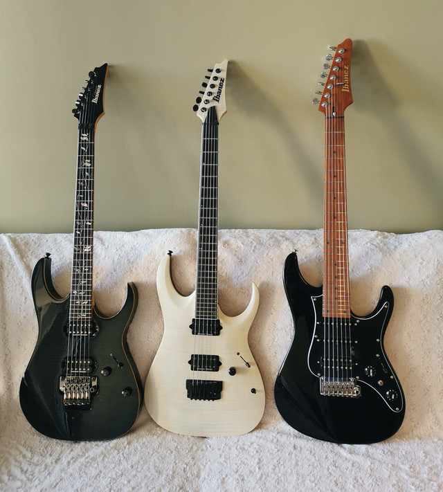 Après, la RGR a des frettes stainless steel, et pas la J Custom, c'est une autre différence importante pour moi. Enfin, ses sons clairs sont ceux que je préfère, parmi toutes mes guitares. Cela étant dit, la J Custom est bien sûr un excellent instrument, j'aurais préféré qu'elle soit sans plaque de protection, et d'une autre couleur, et pour cette raison j'essaie de la vendre, mais c'est vraiment du haut de gamme et personne ne peut se payer un tel instrument dans mon île (Maurice). Si je parviens à la vendre, je me laisserais bien tenter par une PIA !