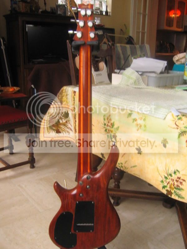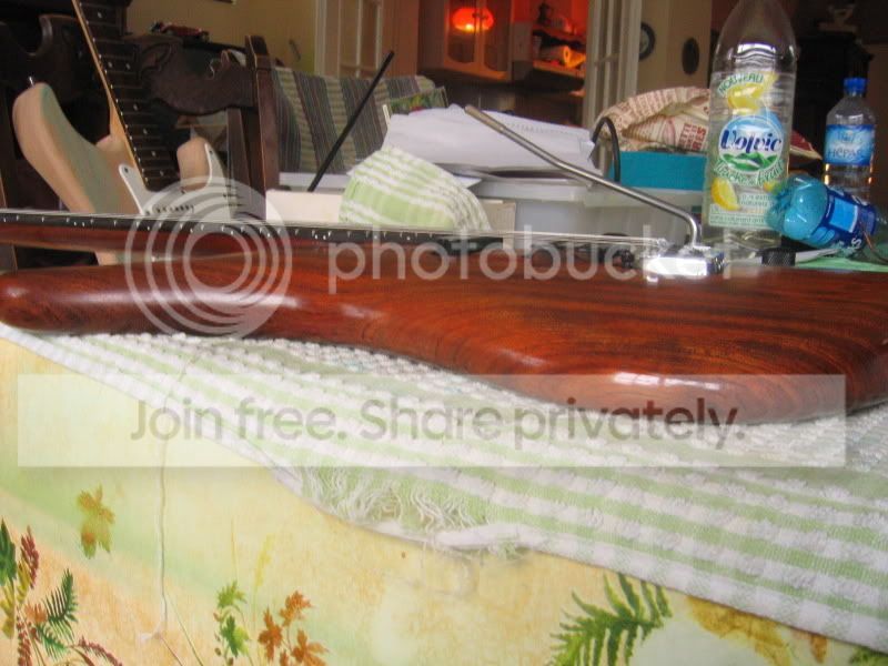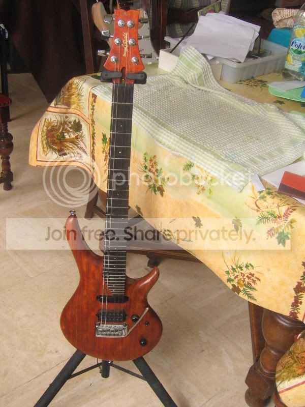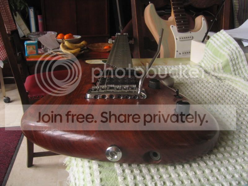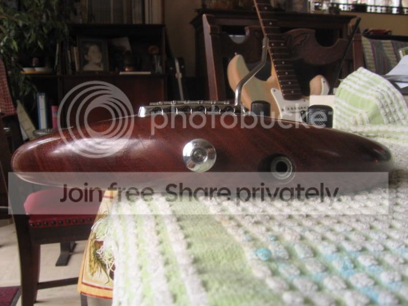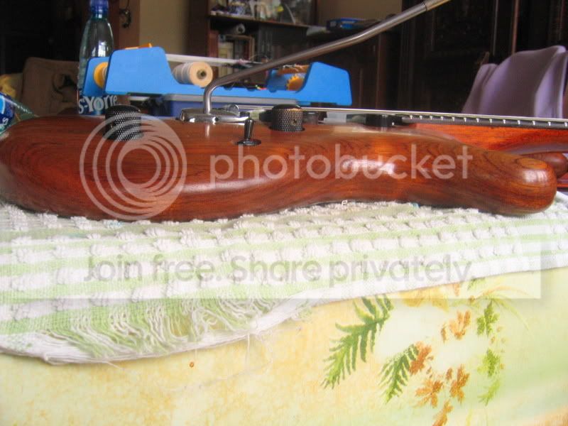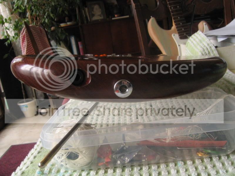 Le corps est en UN SEUL morceau de Bubinga, il est magnifique avec de très jolie "reflet" dedans, et bon dieu tout ce petit monde VIBRE!!! Le corps est arrondi de partout à la main.