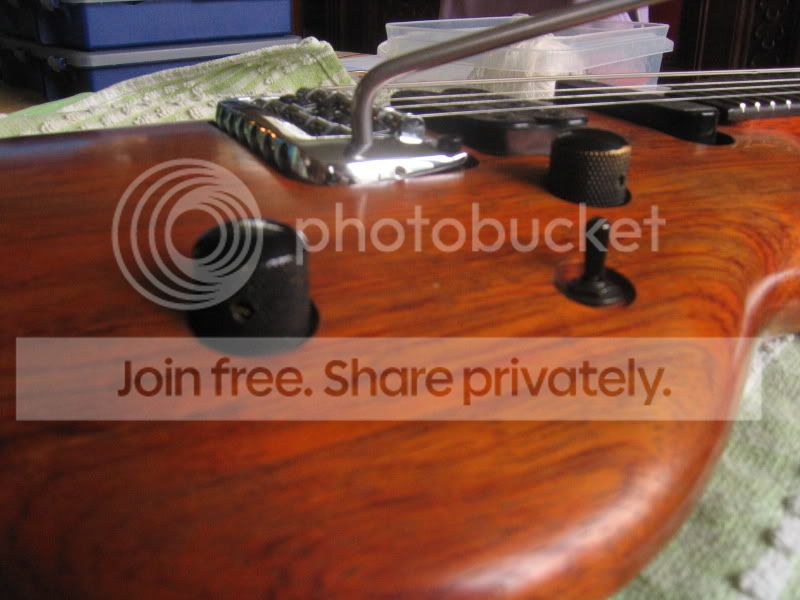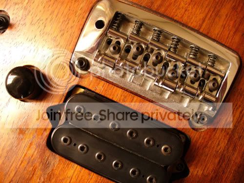 Le vibrato est un HQ, il est tout simplement IN-CROY-ABLE!! Il y a une petite défonce en dessous pour que je puisse avoir un vibrato dans les 2 sens, il répond de façon magique, la barre un peu élevé se prend en main parfaitement et me permet de petit effet que je ne peux pas avec les barre plus basse et plus grosse des floyd et d'autre vibrato. Il est TRES TRES léger, cela est due a un bloc en aluminium.