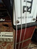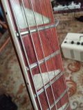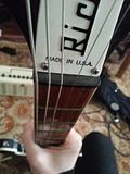 Les mécaniques sont saines. L’électronique aussi, j'ai même démonté le pickguard tout est en parfait état, d'origine. Y'a beaucoup de corrosion sur les plots des micros. Les bulles noires collées sur le pickguard ont l'air difficile à enlever. C'est un coup à l'abimer, donc prévoir d'en racheter un nouveau. Le chevalet et les pontets, tout est en bon état. Les cordes dates de "la guerre mondiale de 78". Les 2 truss rods sont en parfait états (ça tourne pas dans le vide, c'est bien un truss type rickenbacker, et on le voit bien traverser le manche des deux cotés). Le sillet de tête à la corde de Mi grave bizarrement trop sur l'extérieur, cf photo (en tout cas sur ma 650 il est pas autant sur l'extérieur). Le case est en bon état mais les pieds sont complètements explosés. Sur la dernière image on voit difficilement les griffures et marques d'ongles, mais c'est flagrant quand on a la guitare en main.