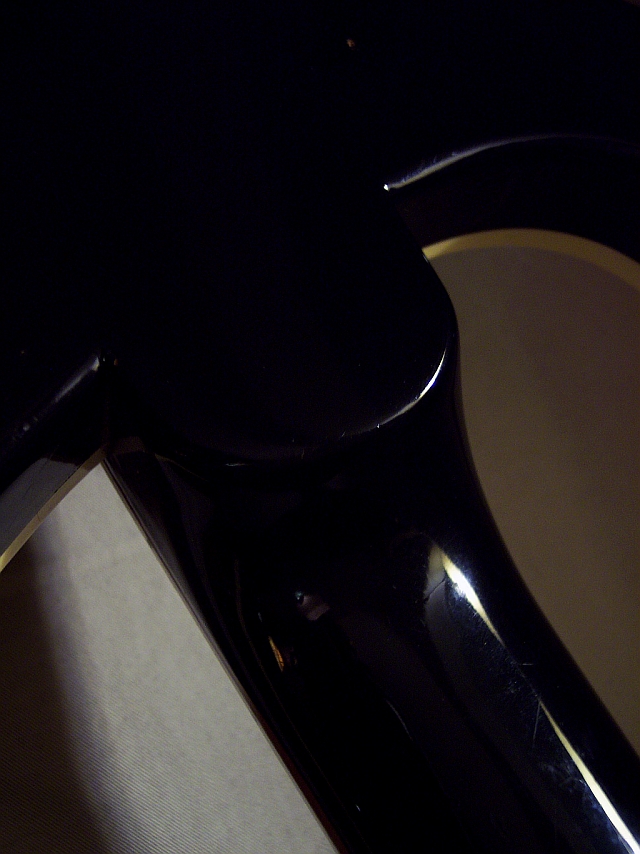 Le principal étant qu'elle est finalement en bon état pour une basse qui a visiblement été beaucoup jouée en 36 ans (bon signe non?    ), qu'elle sonne commak et qu'elle est tout à fait jouable telle qu'elle, même si une planif' ou probablement un refrettage est à prévoir dan sles prochains mois (seules deux ou trois frettes sont fort marquées d'ailleurs - c'était pas un virtuose qui a joué cette basse, plutôt un bassiste "roots", punk ou hard genre AC/DC    ). On sait bien que l'usage de roundwound sur les 4001 bouffe les frettes d'origine, c'est comme ça je le savais d'avance et je l'ai prise en connaissance de cause (calcul simple: même avec le prix d'un refrettage, ça reste une très bonne affaire).
