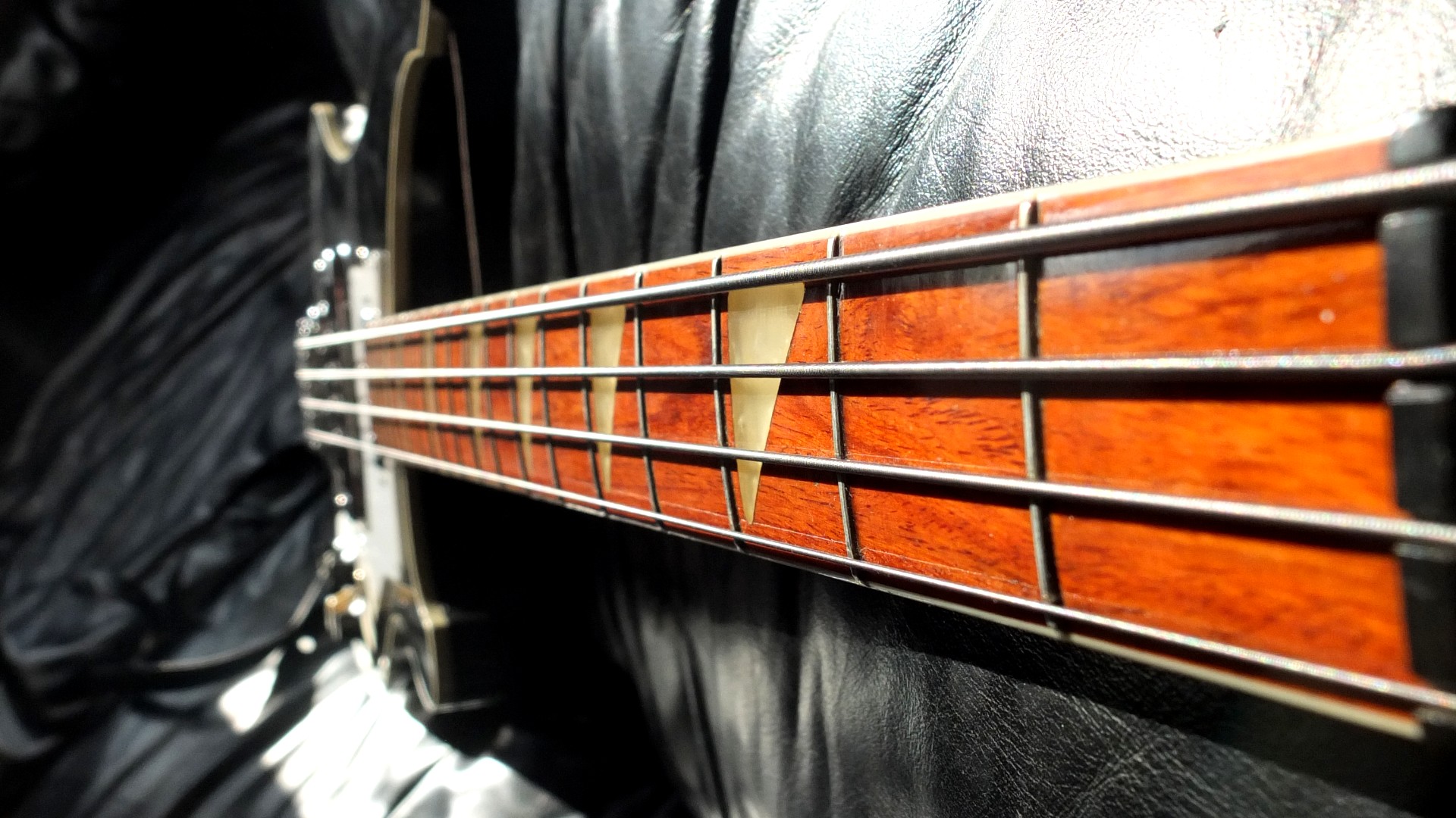 . C'est joli mais c'est tout, du coup je l'ai remplacé par un bezel chromé de chez Rickysounds - franchement, c'est à faire, ça rend la basse infiniment plus jouable tant aux doigts qu'au mediator, un must (et c'est joli en plus):