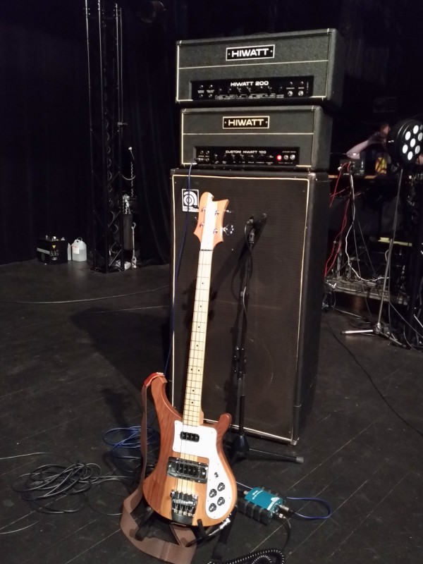 On a utilisé que du Hiwatt ce coup ci. Le 200 c'était pour la photo, il n'avait même pas de fusible. Le DR103 sonnait hyper bien en basse avec le ampeg 15+4x12, surement ma config préférée en basse.