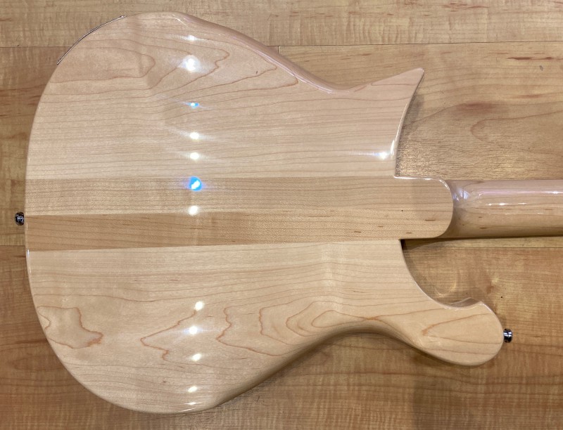 On peut s'apercevoir, en suivant le dessin du bois, qu'il s'agit de deux parties d'érables collées sur leurs longueurs, qui viennent former le manche.