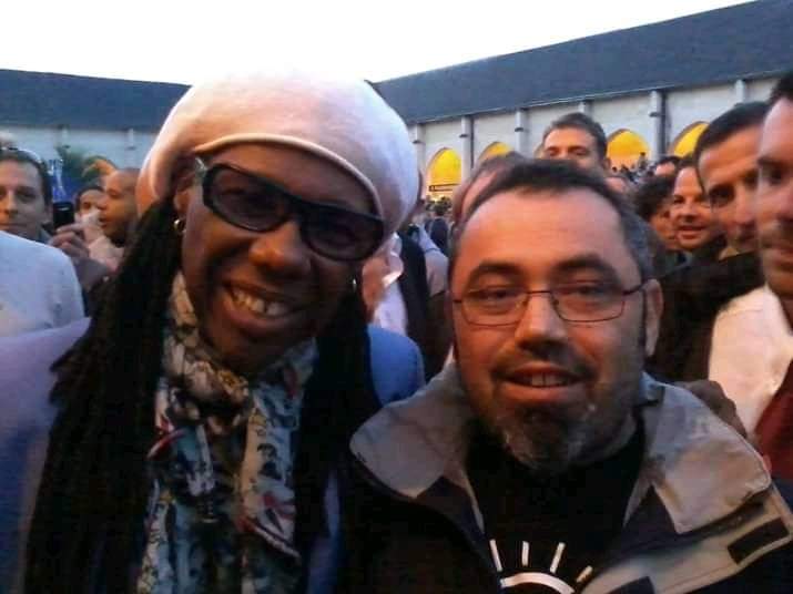 Je suis jaloux. Nile Rodgers est dans mon top 5 de mes guitaristes préférés et plutôt dans le haut du classement. Le numero 1 en rythmique funk. Il y'a 20 ans je suis même allé à jusqu'à Dublin pour voir Chic en concert (un voyage en Irlande ca vaut toujours le coup). J'avais croisé son guitar tech Terry Brauer dans la rue, tranquille et cool (décédé depuis) mais j'avais pas pu approcher les musiciens.