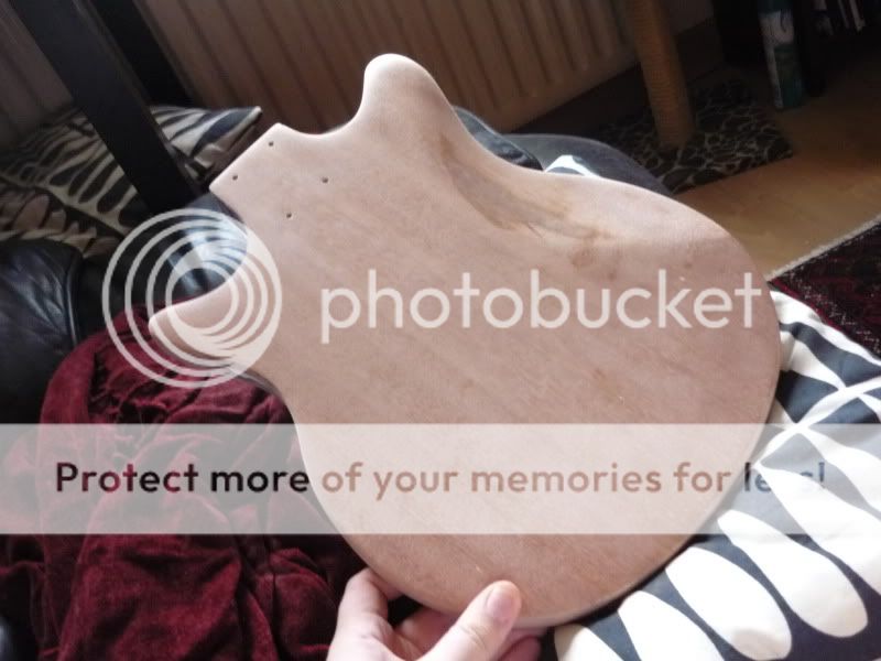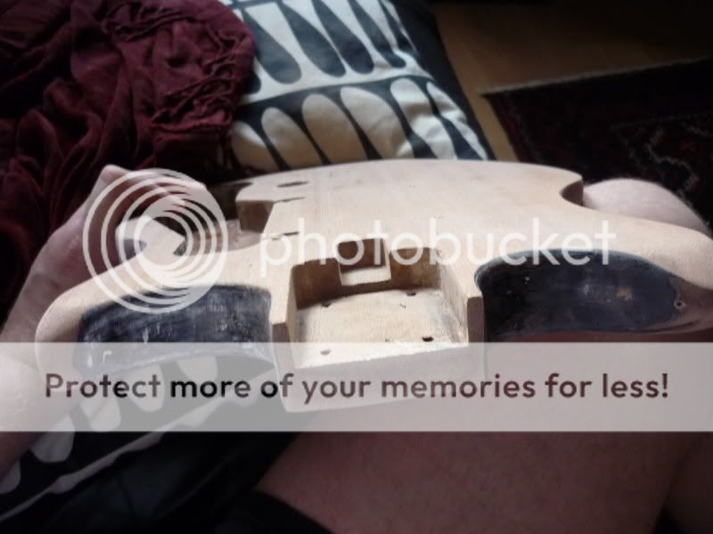Il me reste encore deux jours de travail afin de bosser sur la finition du bois (reprendre les angles, boucher quelques trous, re-poncer avec du papier ultra fin etc) . Demain j'irai demander un devis au carrossier du coin en lui présentant la guitare, histoire de voir si lui faire une couleur par un pro ne va pas me coûter un oeil. Sinon, je ferais comme selon ma première idée, un poncé-huilé et basta...