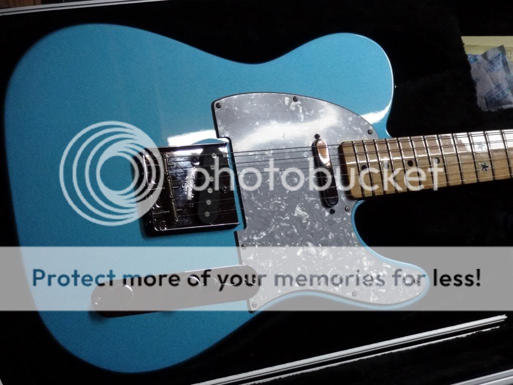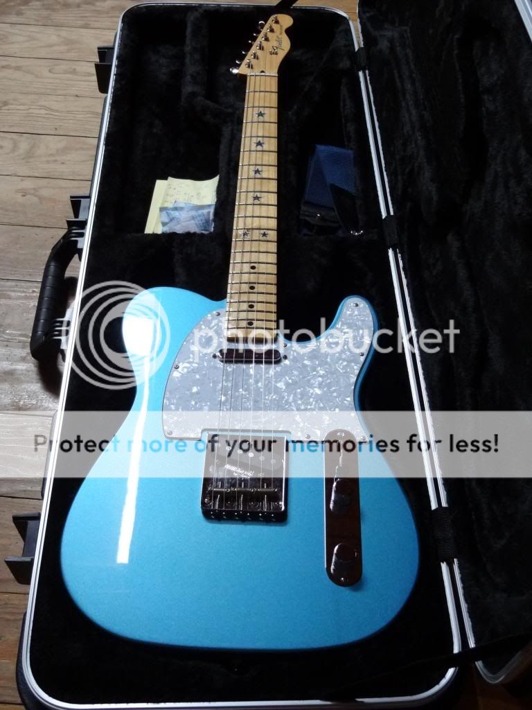 Alors pour les modifs, j'ai changé les mécaniques pour des Gotoh vintage bloquantes, j'ai refait toute l'éléctronique avec du câble vintage, des potards CTS 250K logarythmiques, un sélécteur CRL, un condo Orange drop (dont je me souviens plus de la valeur), avec un treble bleed et des micros custom shop '51 Nocaster. J'ai changé le chevalet et ai monté un chevalet Wilkinson vintage à 3 pontets en laiton. Plus les decals sur la touche, la plaque nacrée et un réglage complet...