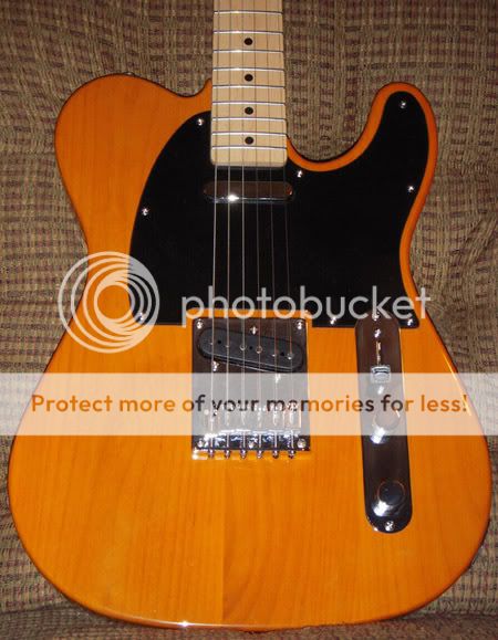 un pote à moi s'est remis à la guitare récemment et s'est acheté une gratte et un ampli (Squier Affinity BSB Tele et Fender SuperChamp XD). Le week end dernier je suis passé chez lui boire une bière après la repetition avec mon groupe, et il m'a fait essayer sa guitare. C'est une comme ca (mais c'est pas la sienne sur la photo):