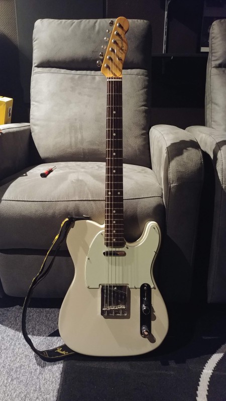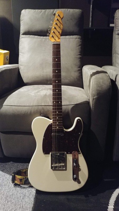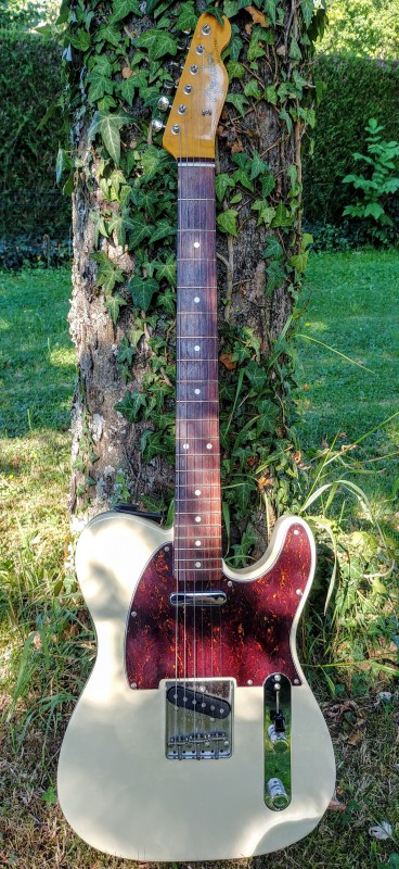 Changement de pickguard sur ma Telecaster japonaise ri62 de couleur Olympic White. Passage du blanc d’origine à un tortoise (acheté 9 euros sur Thotho). Je voulais depuis longtemps faire cette modification. J’ai toujours adoré ce mariage. Suis plutôt content du résultat.