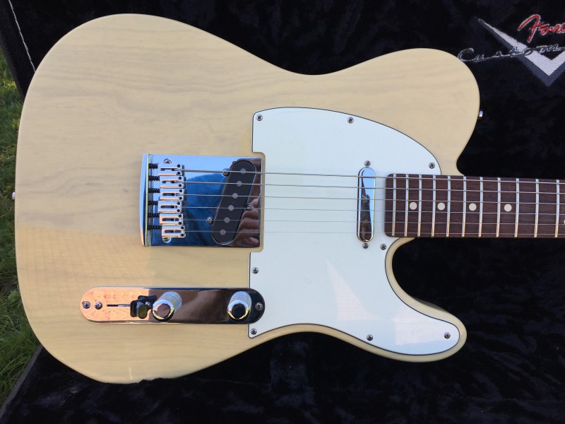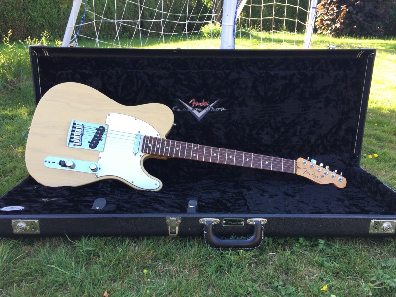 Telecaster moderne qui s'assume: radius 9.5, 22 frettes, pontets laiton chromé individuels, mécaniques schaller, cablage 4 positions, vernis manche satiné etc...