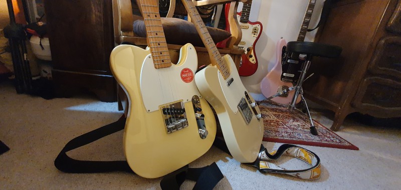 La cabronita bigsby m'avait déjà mis sur le cul, j'adore cette gratte, elle sonne le feu, le poids est raisonnable pour une telecaster avec Bigsby, les finitions impressionnantes, la sensation d'avoir une guitare au moins moyenne gamme entre les mains, la stabilité de l'accordage, etc etc...