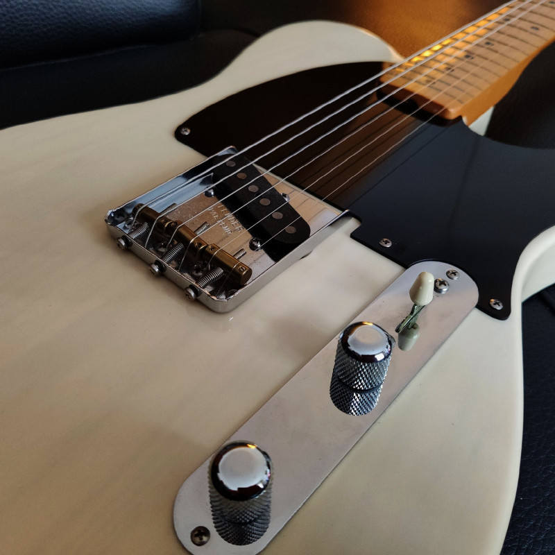 J’ai eu 2 G&L US Telecaster avant, mais revendu. De bonnes Telecaster mais je dois reconnaître qu’au final, j’ai une préférence pour une combinaison de micros avec un humbucker en manche et un vernis nitro.