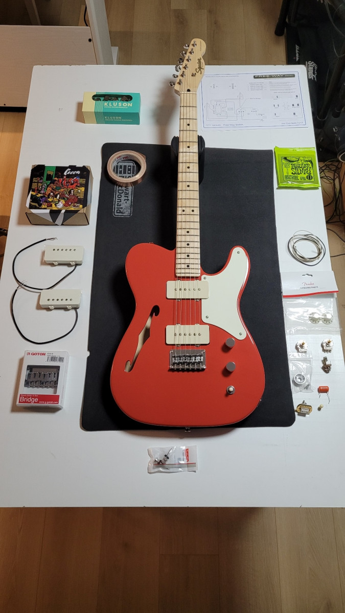 Du coup j'ai décidé de ne garder que le corps, le manche et le pickguard et de changer tout le reste !