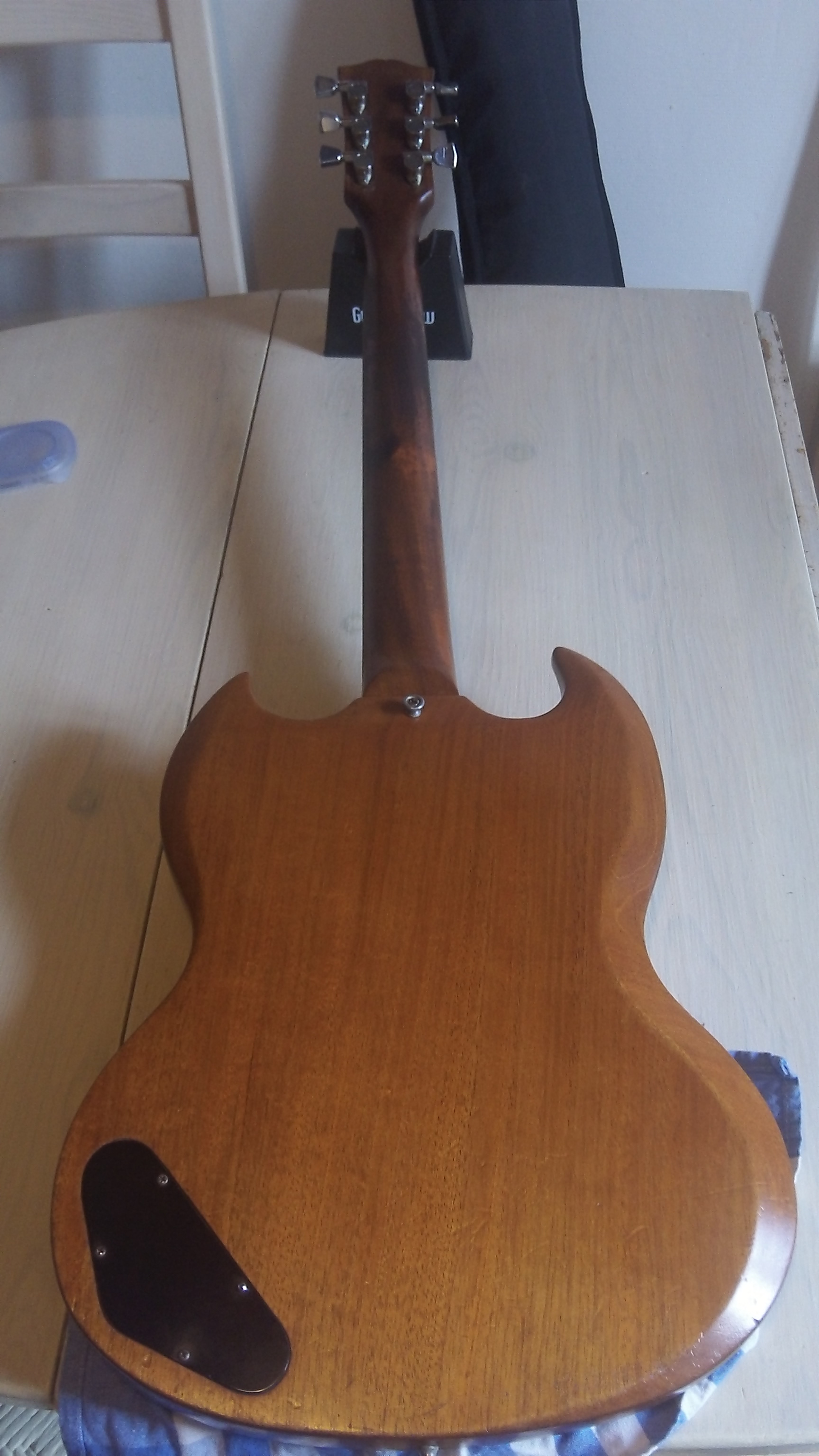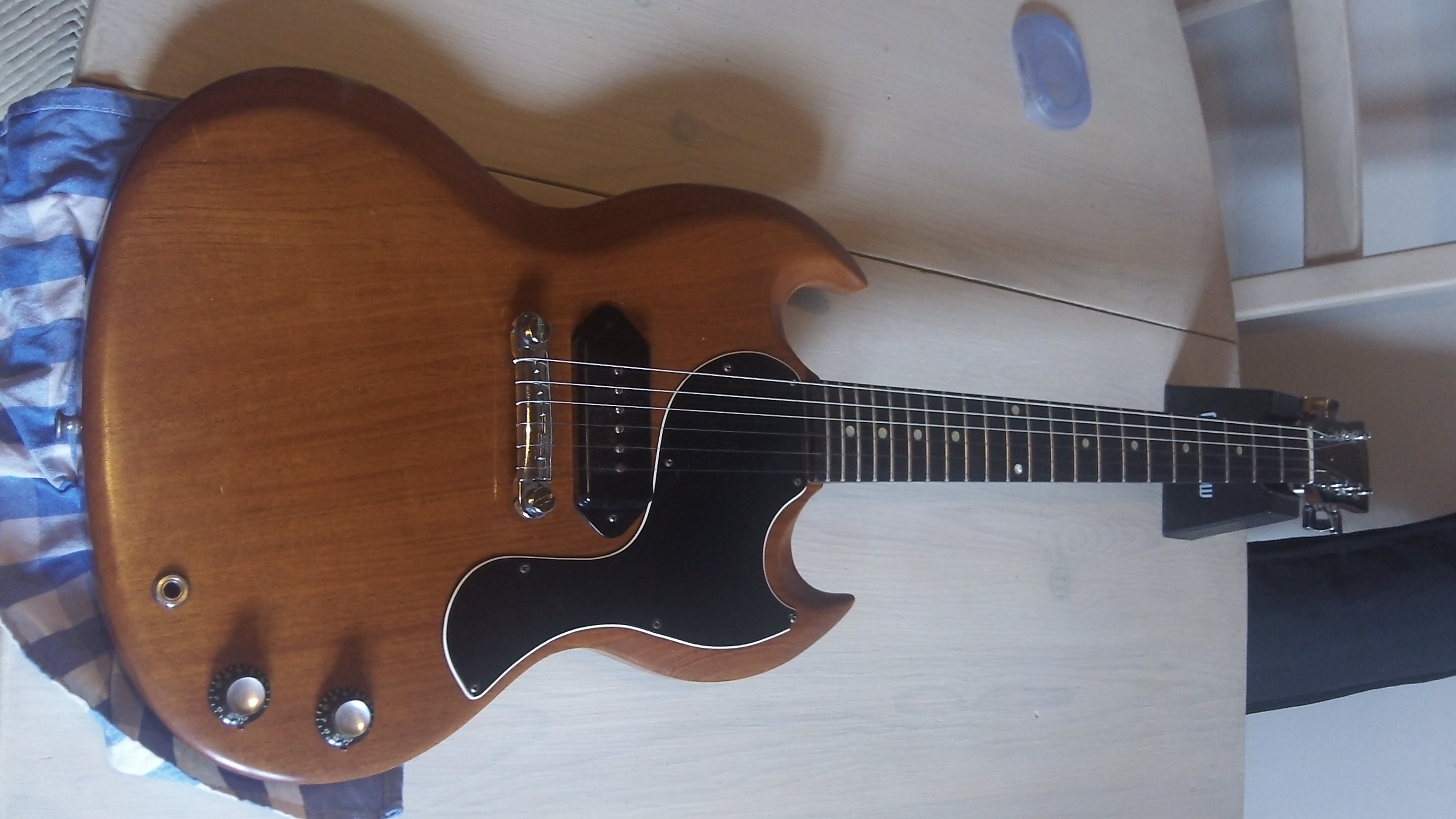 Bein je suis quasi reparti avec la LP sous le bras, la SG était belle, corps 2 pièces centré, beau cherry, pas de défaut de finish mais fcht dure à jouer, intonation dans les choux et touche rapeuse...la LP a un look plus 'cheap' mais punaise, sonorités à vide, manche sustain et même la touche en obéché, grosse claque!