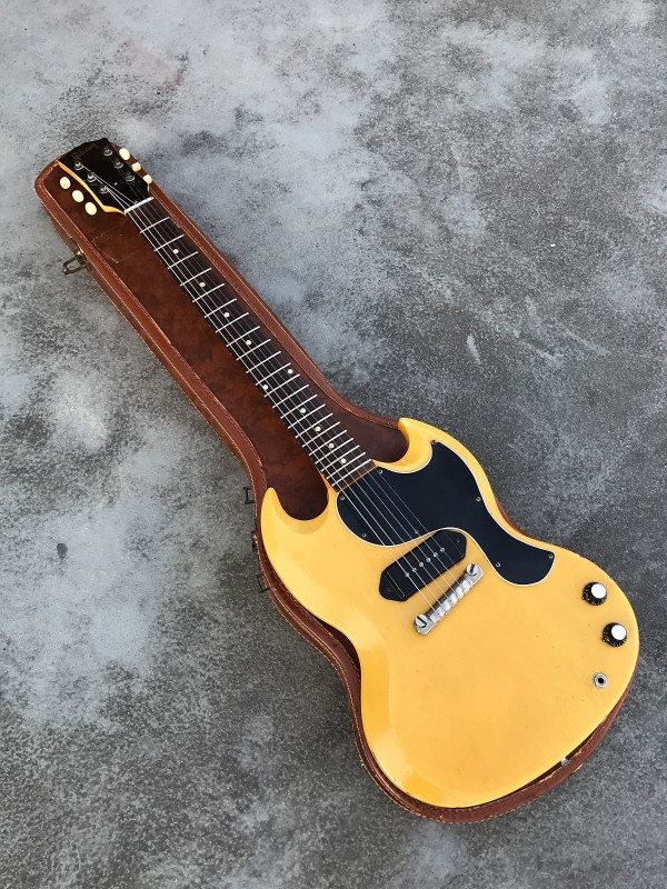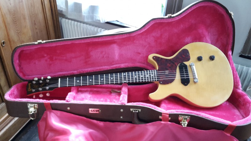 Il s'agit d'une LP Junior, toute noire, de 2001. Etat "player", des pocs ici et là, rien de dramatique. Electronique/cablage refaits, micro changé pour un Hepcat P90, et wraparound remplacé par un gotoh compensé.