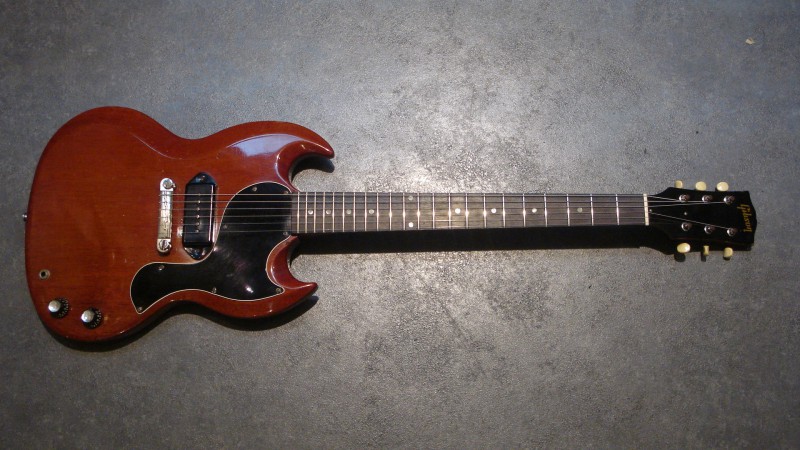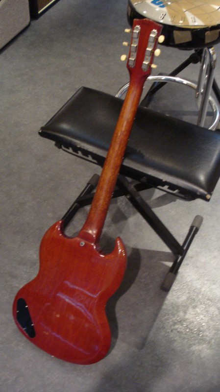 Je ne sais pas si vous vous rappelez de la discussion inaugurée par Imo il y'a quelque temps, au moment de l'achat de ma jr '62 (l'ex de Ruben Block, en polaris white): il était tombé sur de rares photos de Muddy Waters jouant une SG jr blanche avec un capo Hamilton en troisième case, au festival de Newport en 1965, et comme ma junior est blanche et porte les marques prononcées d'un capo Hamilton en troisième case (capo d'époque qui se trouvait d'ailleurs dans l'étui, en double exemplaire), il se demandait si ça ne pouvait pas être la mienne ...