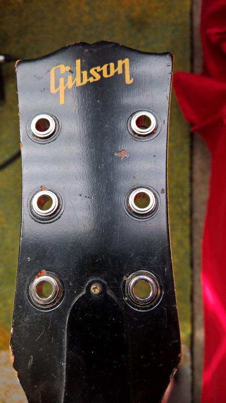 Une solution serait de la confier à un luthier pour qu'il la remette réellement en état d'origine, c'est-à -dire reboucher les inserts actuels et enlever les "plugs" qui bouchent les inserts d'origine, afin de remettre un bridge slant. A voir. En attendant, je dois maintenant décider ce que je vais faire de mon Mojoaxe: j'ai trois candidates, mes deux Melody Maker SG, et ma SG jr de '69 ... on verra.
