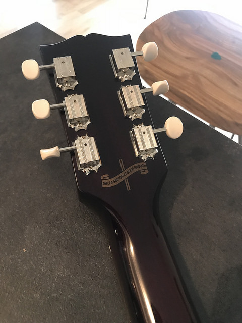 Parfaitement à la taille. Ensuite, revissage des mécas d'origine (les vis d'origine étaient encore présente, j'ai juste dû en remplacer deux qui étaient trop usées), installation des cordes et accordage: ces mécas fonctionnent mieux que la plupart des Kluson vintage que j'ai sur différentes grattes