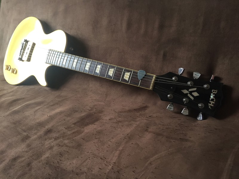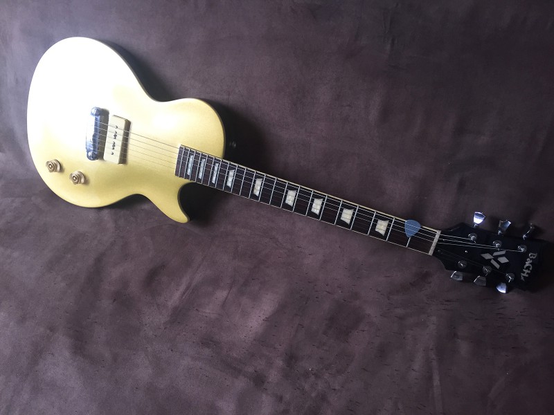 . Déjà, j'aime beaucoup le mec et son jeu, mais aussi son modèle signature correspond parfaitement à mes goûts (dans le temps, j'avais déjà bricolé une Bach junior à table bombée - goldtop cependant).