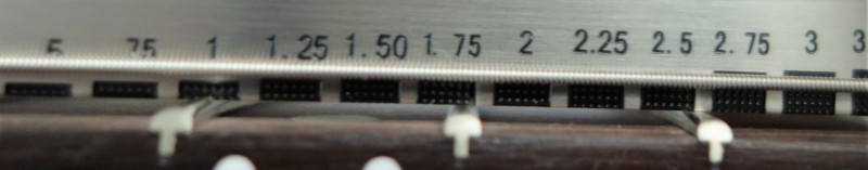 - L'action à la sortie du carton on est à 1.75mm sur le mi grave et 1,5 mm sur le mi aigu sans frise.