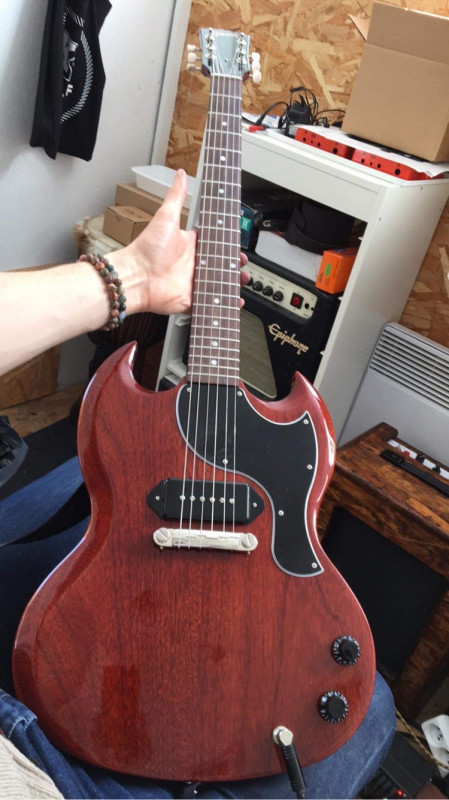 Je fais maintenant partie de la team Gibson SG Junior! Un modèle de 2021, sans la patine, mais bien hargneuse!