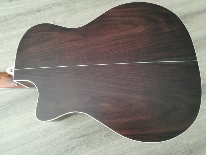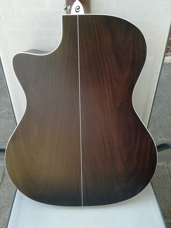 Au final bien m'en a pris : très beau modèle, avec surtout une épaisseur de caisse légèrement moindre qu'à l'habitude (je le savais hein), et un format type auditorium que j'apprécie particulièrement.