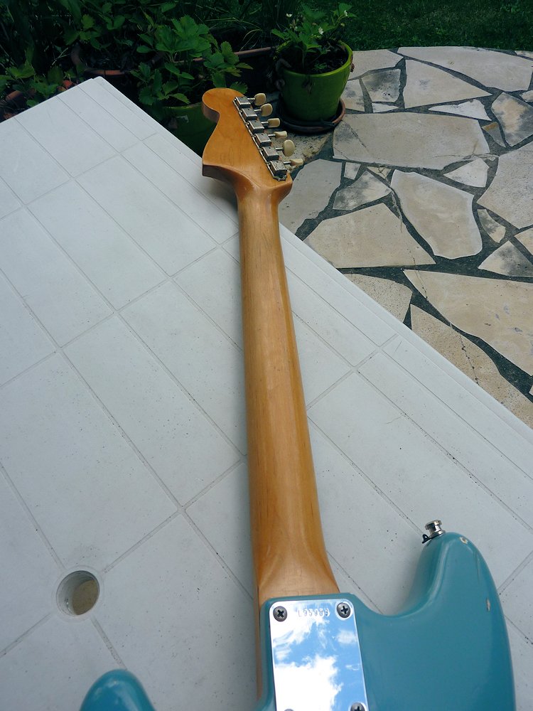 J'ai également une Duo Sonic de 1960, donc la 2nde version apparue en 59 avec manche en rosewood slabboard. Celle ci je l'ai acquise très récemment et je sais que le proprio précédent l'avait acheté aux US chez Gary's Classic Guitar. C'est une tuerie cette gratte, j'ai pu la comparer longuement avec la meme mais de fin 59 et il n'y avait pas photo, énorme résonnance a vide et un twang une fois branchée mama mia ! une vraie bonne pré CBS ! 100% originale.