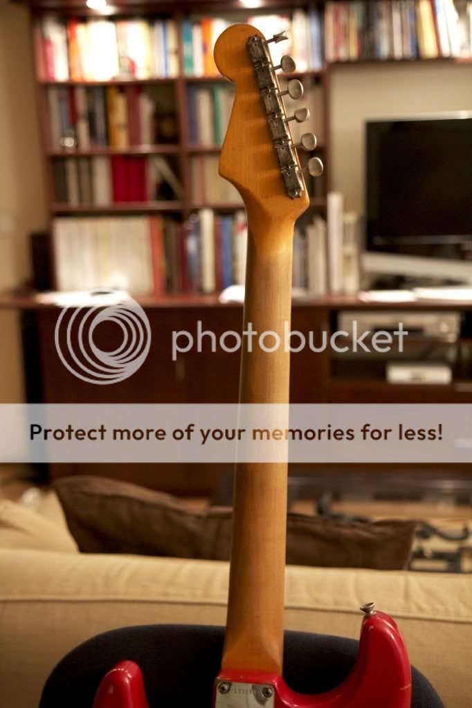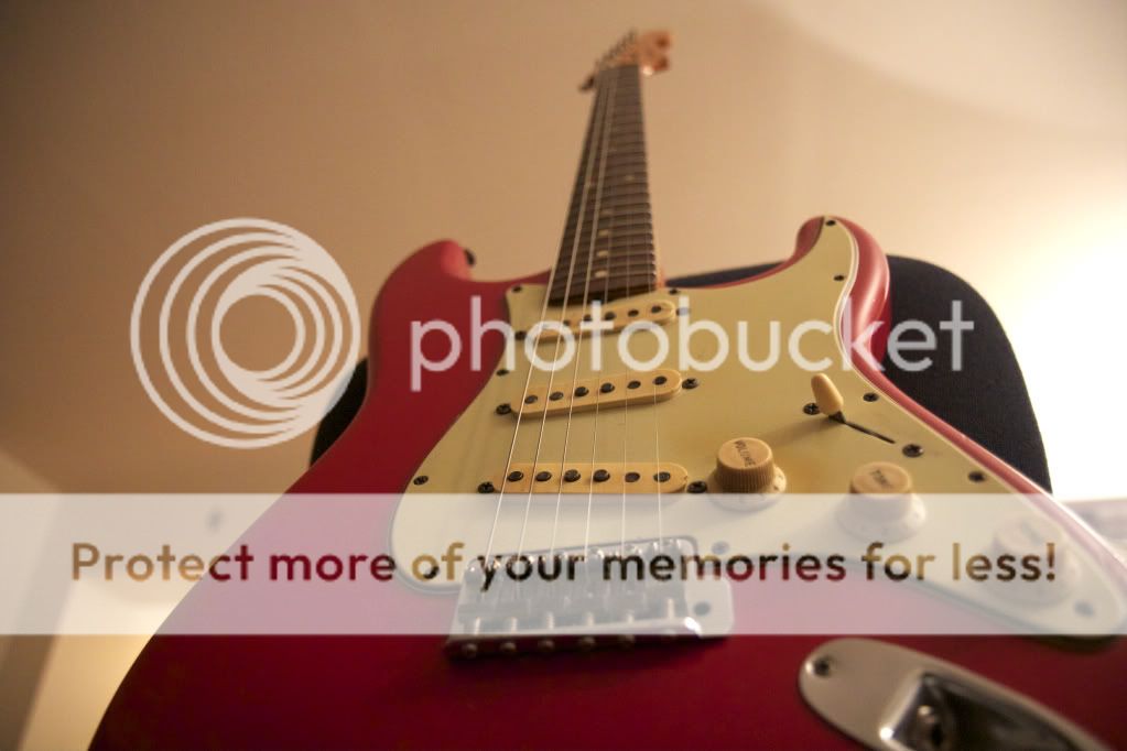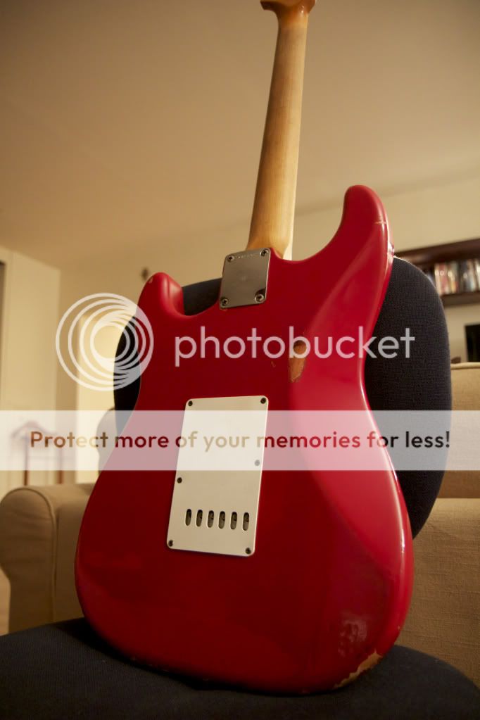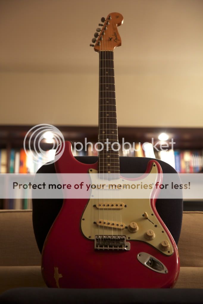 Selmer, l importateur de Fender en Grande Bretagne commandait les guitares en sunburst et les faisaient repeindre sur place en Custom Color, principalement Fiesta Red / Dakota Red pour repondre a la demande des fans des Shadows ... Bien sure, il ne la vendait pas comme une refin / repeinte ...
