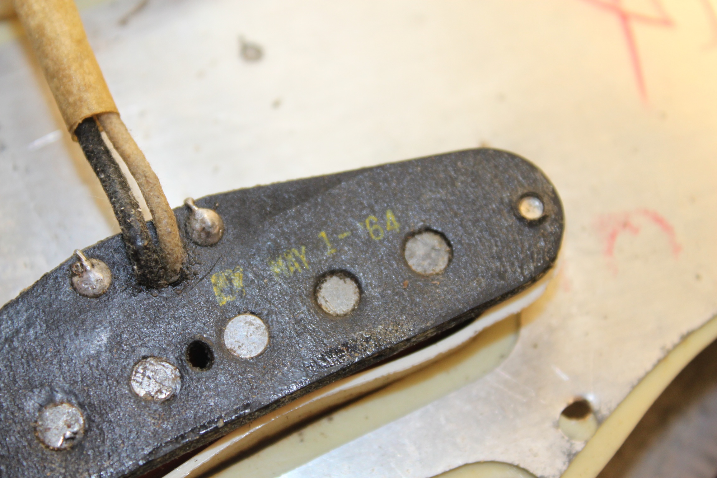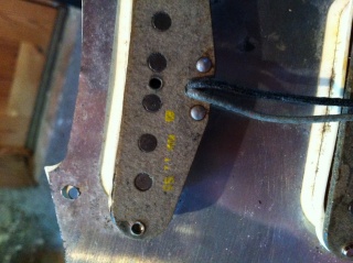 a part cela si elle n'est pas jaunie rien de bizarre, pour jaunir il faut que la peinture ol white soit recouverte d'un verni protecteur translucide et c'est ce verni qui jaunit à la lumière. or avec fender tout était variable certaines strats ont ce verni d'autres pas. artic white n' a jamais existé c'est une appélation dans le petit monde vintage pour désigner une ol white qui reste blanche car absence de verni par dessus la peinture. les fiesta red qui ont ce verni en plus virent au rose par exemple d'où les appelations salmon ou coral pink, une bleue vire au vert.....cordialement