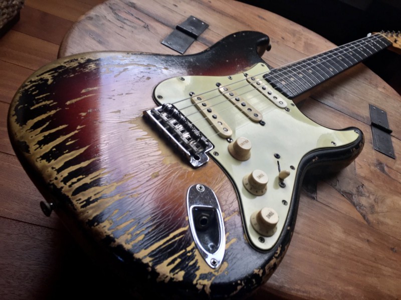Comme dit juste au dessus, c'est le travail des changements climatiques. Si tu regardes bien, ça suit les lignes des craquelures du vernis. C'est n'est pas une maltraitance ou lié au jeu. Enfin, indirectement, car la guitare serait resté dans son étui sous un lit, elle ne serait pas dans le même état. Celle ci a du souvent changer d'ambiance, chauds, froids, sec, humide ...