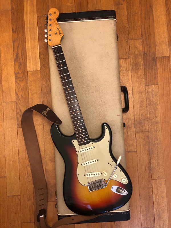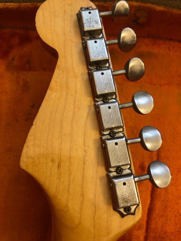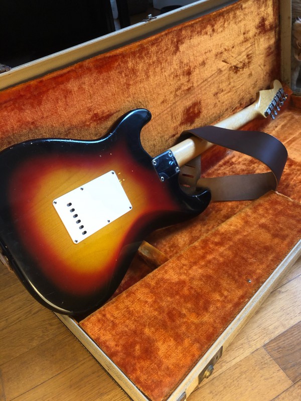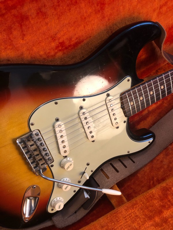 J'ai la chance d'avoir depuis quelque jours une strat de 1963, pour faire vivre le topic et pour le plaisir des yeux je vous la présente en photos.