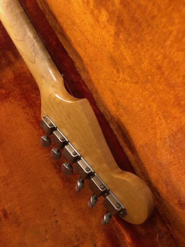 Pour le manche, on dit que cette période est la meilleure pour les manche Fender et c'est vrai que la prise en main est idéale. Ca doit être un profil en C, le vernis s'est patiné et commence à disparaitre sur les cotés, c'est comme enfiler une vieille paire de baskets !