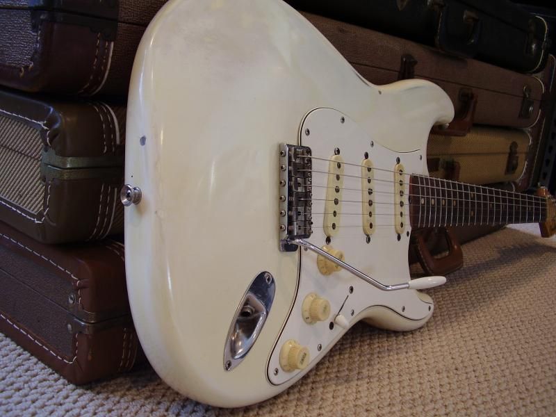 Mon but sera de comparer cette guitare (Fender Stratocaster série L de 1964, refin corps (OW sur le sunburst d'origine), refin manche et tête (reissue decal et vieillissement de vernis) fait par