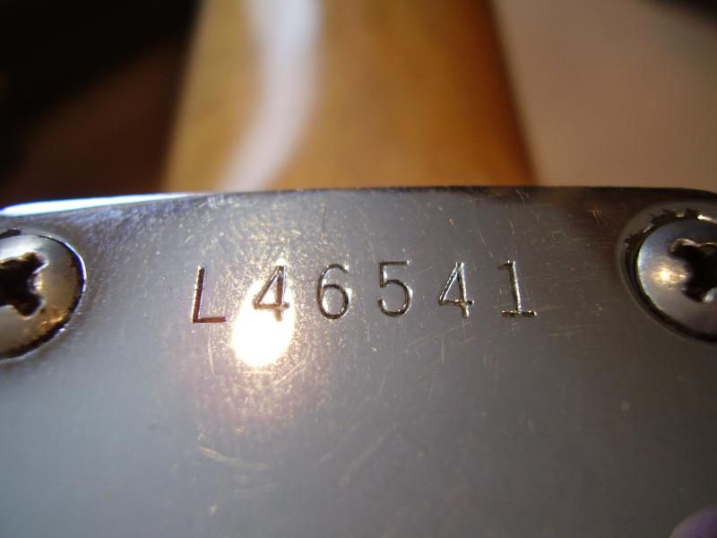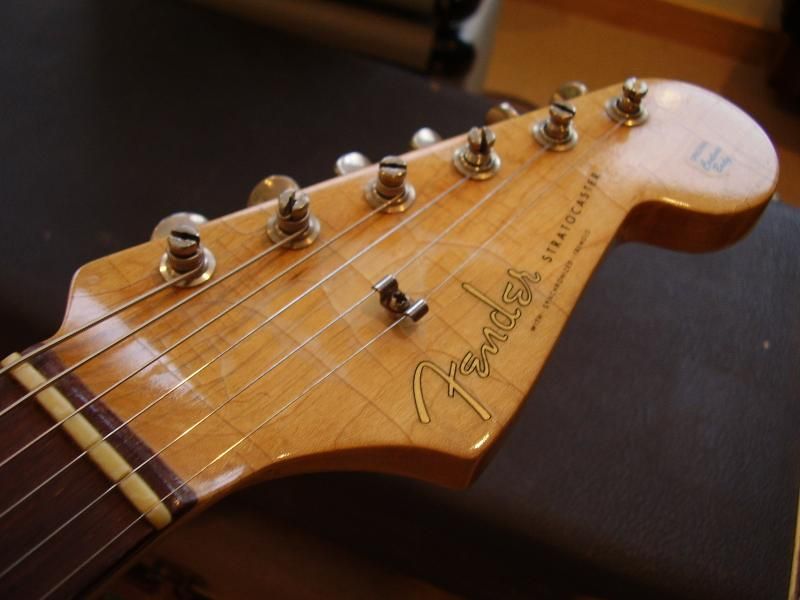 Tom Murphy il y a des années, refrettage pro medium jumbo, tout le reste étant d'origine-micros (1964), potards (1964), 3 way switch (1964), corps et manche bien entendu 1964 et le tremolo (1964):