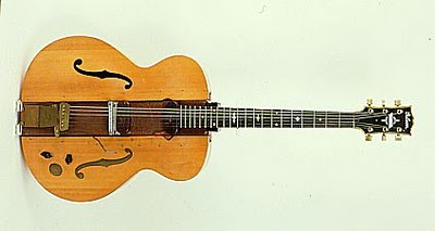 Loin de moi l'idée de remettre en cause tes dires Doc, mais il me semblait qu'il s'agissait d'une poutre de pin sur lequel il avait collé un manche d'une archtop d'une autre Gibby. J'ai essayé de retrouver vite fait sur le net, mais les photos sont plutot petites (ou filtrés par le proxy de mon boulot) et les textes divergent...