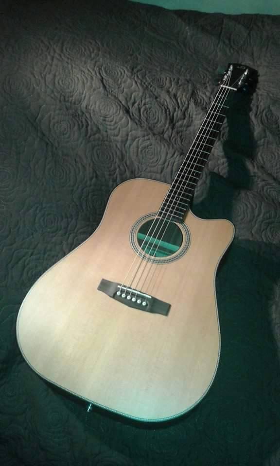 Je me suis donc interessé a cette marque slovaque qu'est Dowina, un magasin local sur grenoble en aillant une petite dizaine j'ai eu de quoi tester. Et bien en général la qualité est top, finitions plutot satiné avec un vernis fin et souvent en open pore, le bois vie et vibre. Cette marque m'a tant plus que j'ai craqué pour une DCE 555, soit une dreadnought a pan coupé electro (fishman presys) avec table massive cedre et le reste en acajou laminé. Cette guitare a une projection comme j'en ai rarement entendu et est un delice a jouer et ce pour 580€...