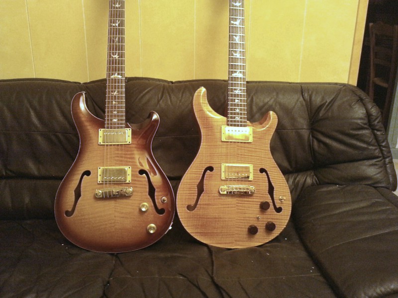 Les miennes sont maintenant équipées de Tom Holmes pour l'Artist ( celle avec le piezzo : donc l'orientation la plus Jazz) et l'autre avec des Wolfetone Legends un peu modifiés pour sonner justement ... plus ES335.