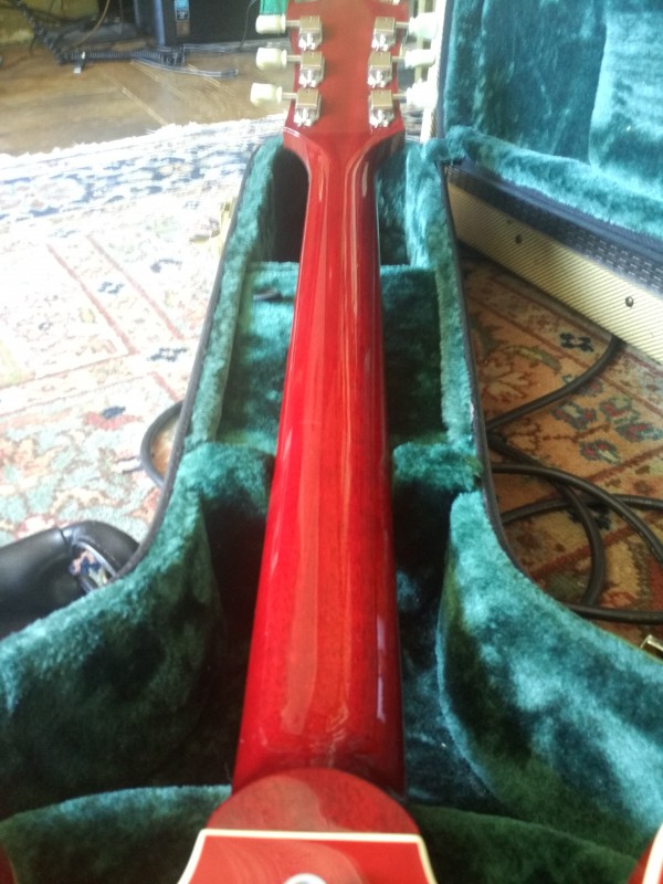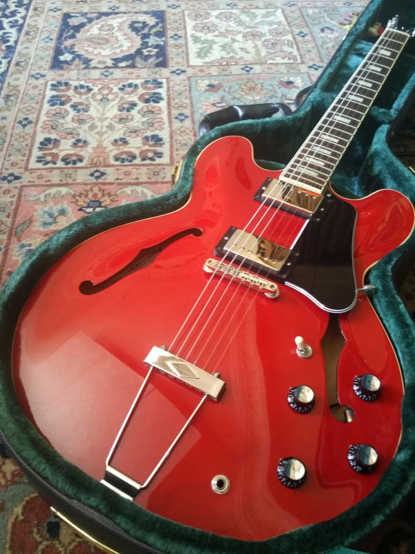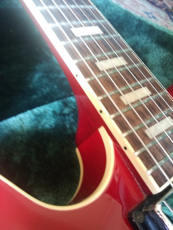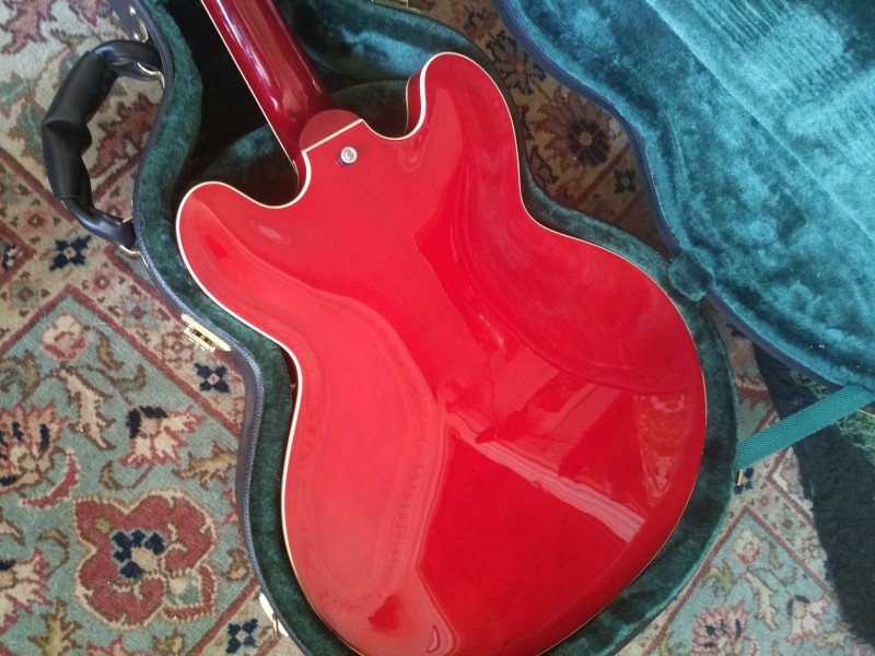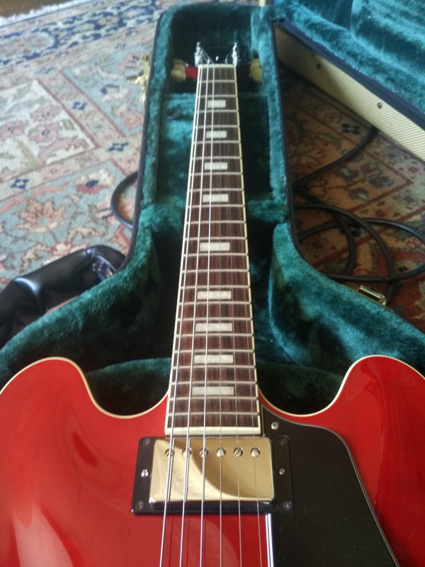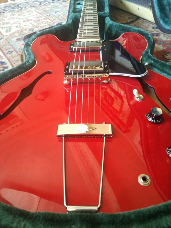 (...) Elle est arrivée ce matin, je suis époustouflé. Le niveau de cette 335 like est incroyable. Les pafs Klein sont bien low wind et le boisé de la gratte ressort terriblement, ça résonne, c'est nuancé... On a beau avoir 0.90 à la première frette le manche est un régal, il tombe sous les doigts. Lutherie irréprochable. J'ai l'impression d'avoir une gratte à 3.000 balles ou plus.