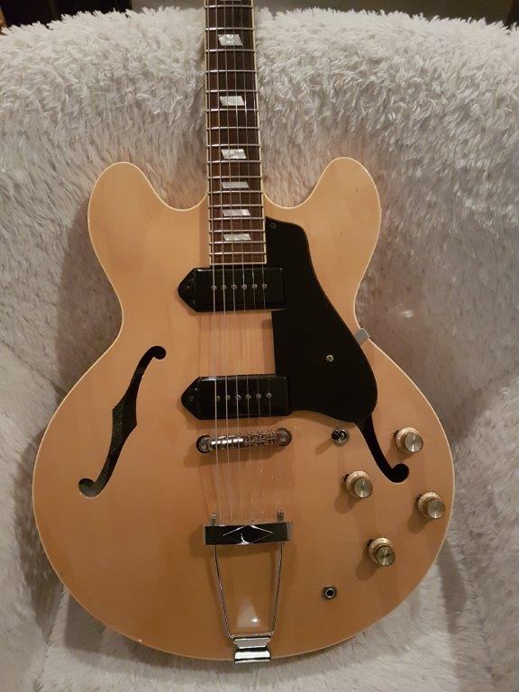 Epi Elitist Casino dont les caractéristiques me plaisent (jouabilité, polyvalence et palette sonore), à un prix très intéressant ... Seule réticence -levée par le copain luthier- : les micros, qui ne sont pas des P-90, mais des