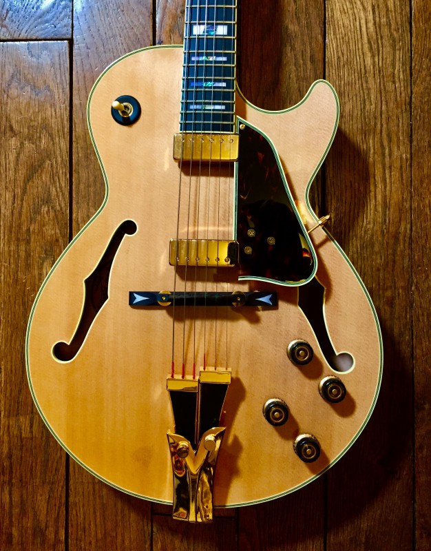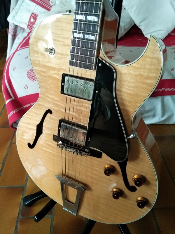 - guitare confortable (16 pouces, c'est le bon compromis), manche confortable (plus fin que ce que j'attendais, mais ce n'est pas non plus une Ibanez), accès aux aigus plus facile qu'avec mon archtop 17' à pan coupé vénitien.