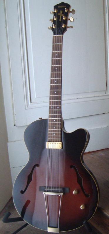 Autrement j'ai aussi une Ibanez demi-caisse (avec poutre centrale) mais petit format (taille d'une Les Paul en gros) et qui marche bien aussi pour les sons Jazzy mais du coup je la trouve moins "Old School" à mon sens - le côté guitare avec le piquet acoustique typique n'y est pas aussi marqué.