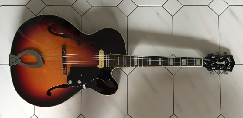 En fait, quand je joue debout j'aime bien avoir ma guitare assez haut, la tête du manche "Nord-Est", mais comme je ne suis ni grand, ni baraqué, je préfère une guitare légère ... Ce qui justifie l'emploi d'une 330-like (