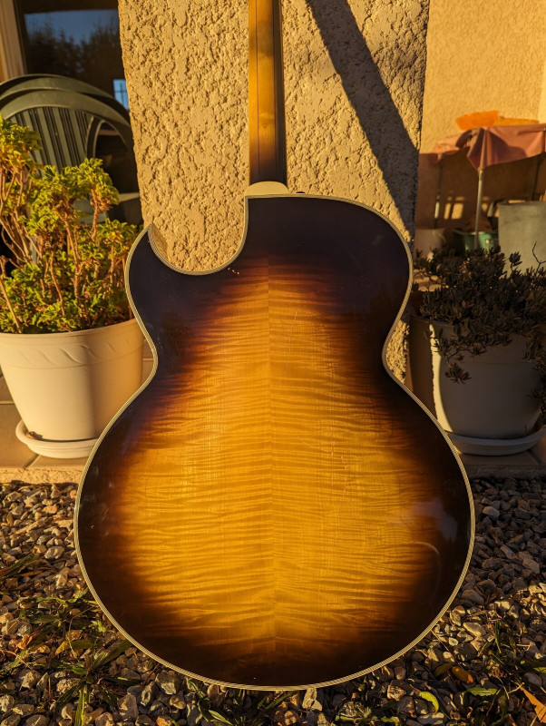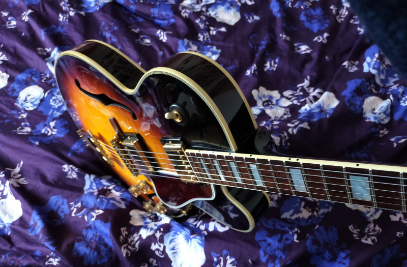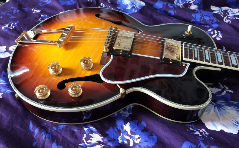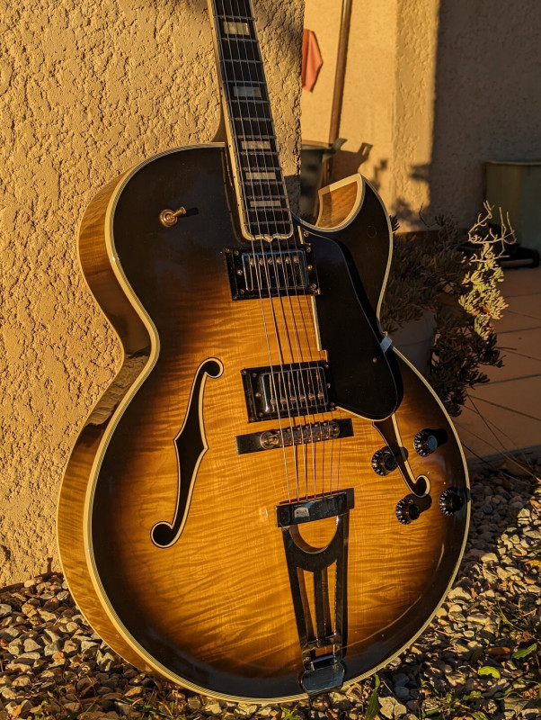 En tout cas une guitare qui ne ressemble à rien d'autre que j'ai essayé jusqu'à présent, j'y retrouve dedans un zeste de 335, de LP, et de 175 et aussi de la GB10 sans être aucune des guitares cités... Je suis impatient de voir comment elle sonne en combo jazz et à un certain volume.