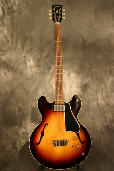 Donc je la prends en main... Déjà elle est bien réglée juste le mi grave pas bien accordé. Les harmo sont OK, le manche plat, l'action pas trop haute... Surprise, elle n'est pas trop lourde (pour moi qui je suis 95% avec une 335 ou une grosse jazz-box), plutôt moins que la dernière LP que j'ai essayé, mais bon, toutes les LP me paraissent assez légères, alors