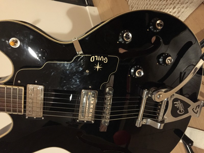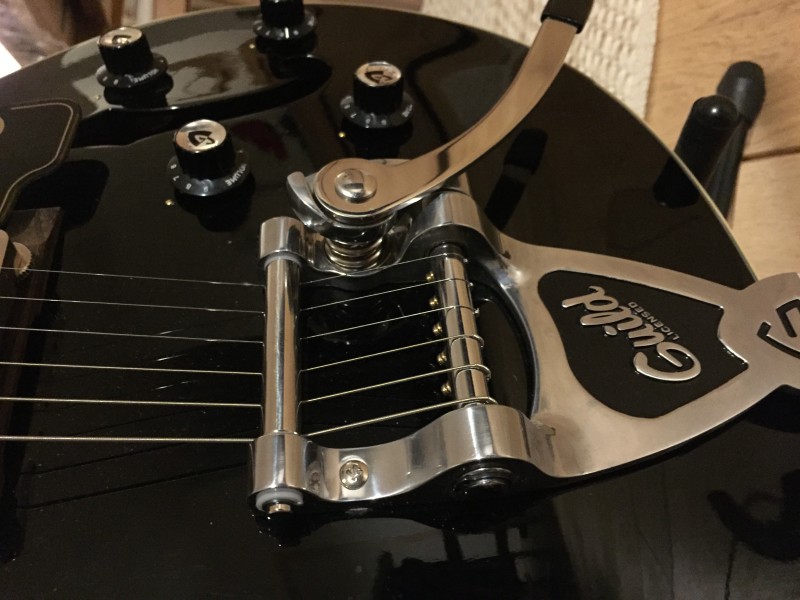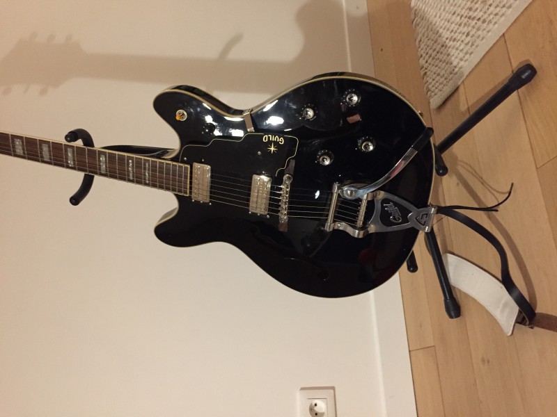 Electric' : FENDER Telecaster CIJ Reissue 62 "Olympic White", FENDER Stratocaster Player Series "Butter Cream", GRETSCH G2622T, GIBSON Les Paul Tribute 2019 "Honeyburst", GUILD S-200 P90, HB Esquire DIY, HB JA 60 « Shell pink »