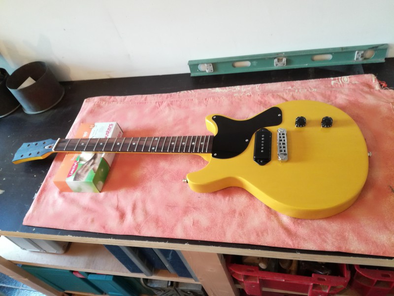 Bon, le matos de base est vraiment bon: corps en acajou une pièce, idem pour le manche. J'ai préféré un bon accastillage (Kluson), bon micro (SD), bonne électronique précâblée... bref, si tu prends le kit de base, tu seras moins cher que ça, mais bon... quand tu vois le prix des Junior DC qui flambent grave, je crois que ça reste un bon compromis...pour qui aime bricoler, mais c'est vraiment pas compliqué.